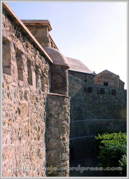 En 1680, desde este torreón a la puerta el conjunto estaba maltrecho y Frías hizo el parapeto y foso en roca, con puente levadizo, que Brito reformó en 1687.