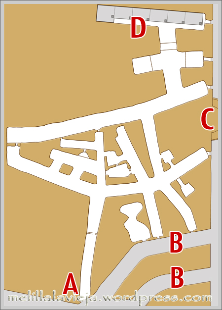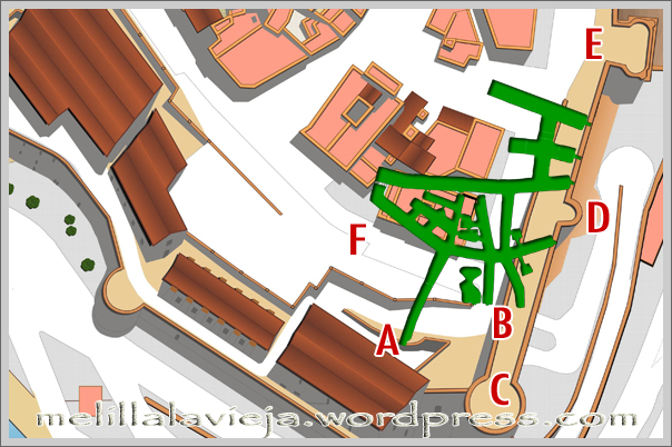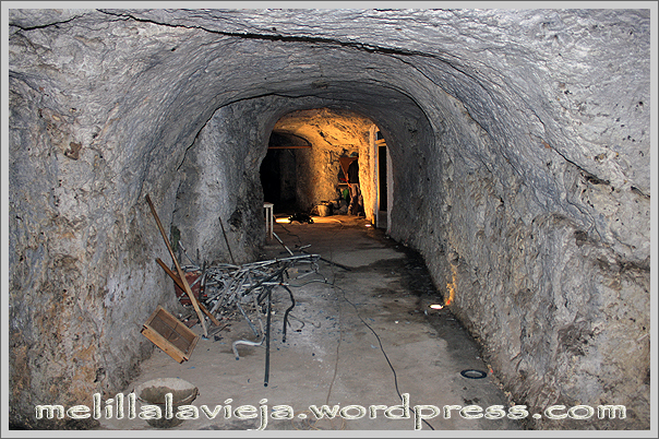 Cuevas de la Florentina Situadas en la zona de la Florentina, de donde toman su nombre, se ubican en el interior de las Murallas de Levante, en el Frente de Mar. Varias de sus entradas daban al antiguo túnel de acceso rodado a Melilla la Vieja hasta que fueron cegadas o tapiadas en el siglo XX. La única entrada que hoy existe está frente al local social del Club Scorpio de Aventuras. En la actualidad (abril de 2010) las cuevas están en proceso de restauración y musealización teniendo como objetivo instalar una exposición sobre el mundo de la navegación entre los siglos XVII y XIX. De vino, vinagre y leña Gracias a Francisco Saro (4) que en su página web ("Mis páginas") dedica un artículo sobre los almacenes de Melilla la Vieja, sabemos que en 1846 el capitán de Artillería Francisco Alvear hizo la siguiente descripción: "Las espaciosas cuevas situadas en Florentina, frente al Almacén de Fortificación, y hasta lindar con los cuarteles subterráneos, construidas en roca natural debajo del terraplén, que desde el torreón de las Cabras sale hacia el Bonete, están destinadas para almacén de vino, vinagre, carbón y leña, pudiendo contener cómodamente hasta 30.000 arrobas de esta última, y de las otras lo que pida la espresada fuerza en los tres meses. Están ventiladas y tienen buena luz y dos comunicaciones espaciosas hacia la misma parte de los almacenes de fortificación. Se reduce a cuatro naves divididas por otras cuatro en dirección perpendicular para su comunicación, mas cuatro pequeñas cuevas que salen de ellas. Los términos medios de sus dimensiones son 90,55 1/2,120 y 122 pies de largo, y 14, 13, 12 1/2 y 10 pies de ancho, y las otras cuatro de comunicación, 36, 46,91 y 112 de largo y 14, 10, 9 1/2 y 12 de ancho." |