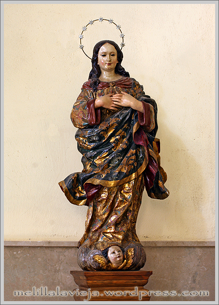 Su talla es tosca y su policromado ha sufrido considerablemente por el tiempo. Le acompaña la imagen de la Virgen de la Peña, Patrona de Alhucemas, escultura de incalculable valor.