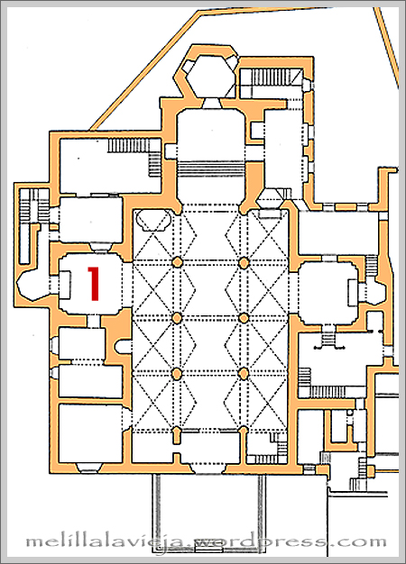 Situada esta capilla (1) en la nave lateral izquierda, del oeste, denominada de "El Evangelio ". La capilla es de planta cuadrangular rematada por cuatro pechinas que soportan una cúpula de media naranja con linterna. |