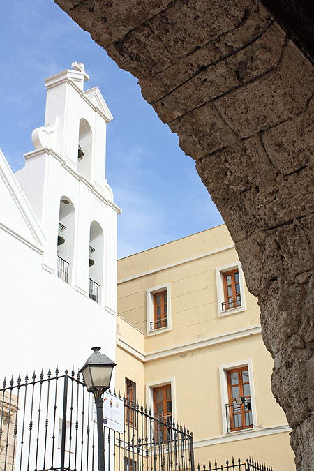 En la parte norte del primer recinto amurallado se encuentra la Iglesia de Nuestra Señora de la Concepción, que se comenzó a construir 1657, sobre el solar de la que, probablemente, fue iglesia de San Miguel. La situación de su planta basilical latina es contraria a la forma de oficiar hacia Oriente, por quedar orientada de sur a norte. Fachada Presenta una fachada lisa encalada de 32,20 metros de longitud y una altura central de 13.30 metros. coronada por un frontón triangular de 3,00 metros de ahura y 7.s0 metros de hase, que en su centro tiene un respiradero circular de medio metro para la cubierta en dos aguas de la nave central. Bajo el frontón una ventana rectangular, de 1.00 metros por 1,50 metros, da luz al coro; bajo ésta y sobre la portada una hornacina rectangular de las mismas dimensiones que la ventana, rematada por frontón triangular con cruz en vértice, acoge la imagen de piedra arenisca que representa a Nuestra Señora de la Concepción de la Virgen María, advocación a la que se dedica el templo desde 1663 y que pudiera ser la fecha de su talla.
